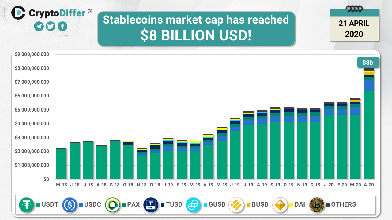 그러다보니 리스크 테이커가 아닌 투자자들도 기존에 은행에 보유 중이던 법정화폐를 스테이블코인으로 변환하여 예치할만한 유인이 충분해졌고, 그에 따라 최근 들어서 스테이블코인의 시총이 급격하게 상승하고 있는 트렌드를 보이고 있습니다.
