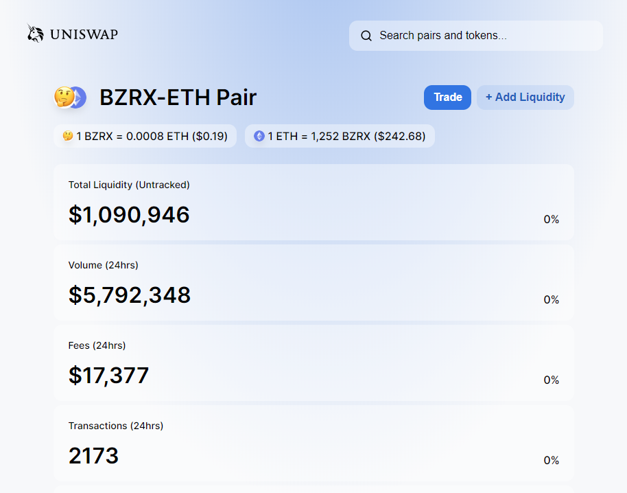 언락이 풀리는 동시에 잠시 0.5달러 선까지 가격이 올라갔었던 BZRX는 거래량이 줄어들면서 약 0.19달러 선에서 거래가 되고 있는 상황입니다.