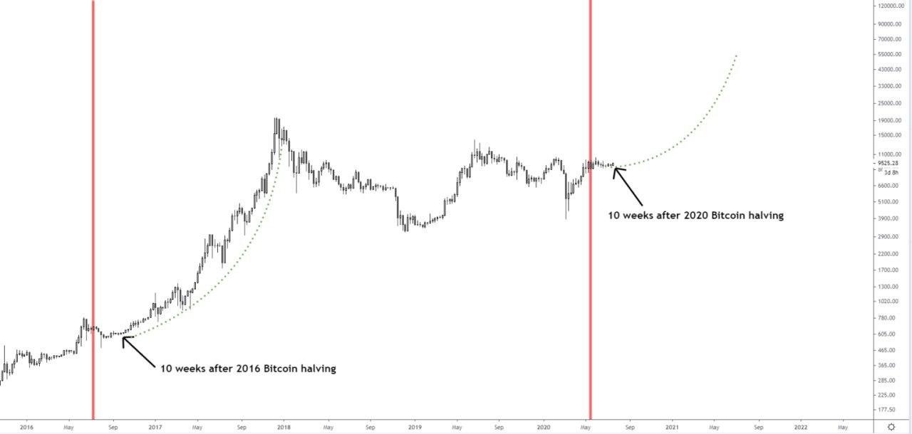 지난 주말 동안의 비트코인의 강한 상승이 있기 전에 Josh Rager라는 비트코인 애널리스트는 역사적으로 비트코인의 반감기 이후에는 비트코인이 하락해왔으며, 반감기 도래 이후 10주 후부터 강한 상승이 있어왔다라는 분석을 내놓고서, 곧바로 이러한 비트코인의 도미넌스까지 동반하여 상승하는 모습이 굉장히 인상적입니다.