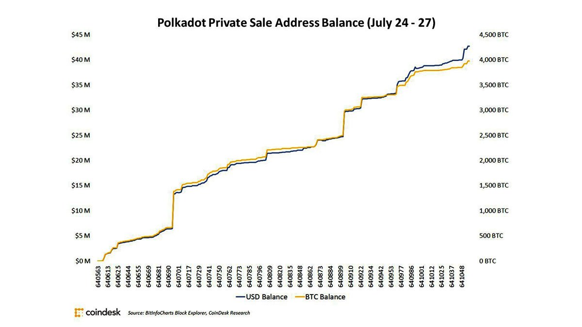 지난 24일부터 27일까지 진행되었던 폴카닷의 2차 프라이빗 세일에서 총 4,300만 달러에 해당하는 BTC가 모금되며 72시간 만에 펀드레이징이 마감되었습니다. 이번 프라이빗세일의 판매 기준가격은 125달러였다고 하네요.