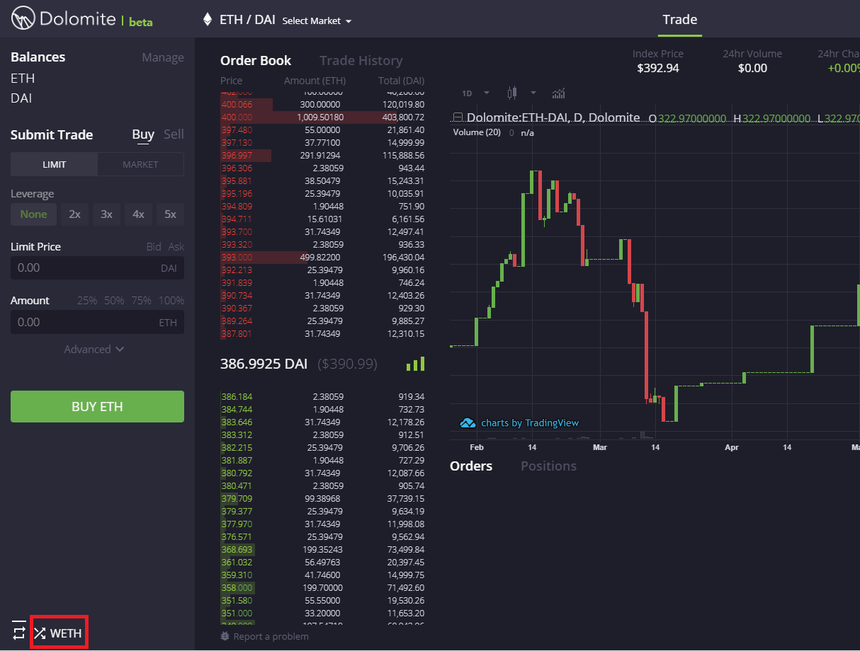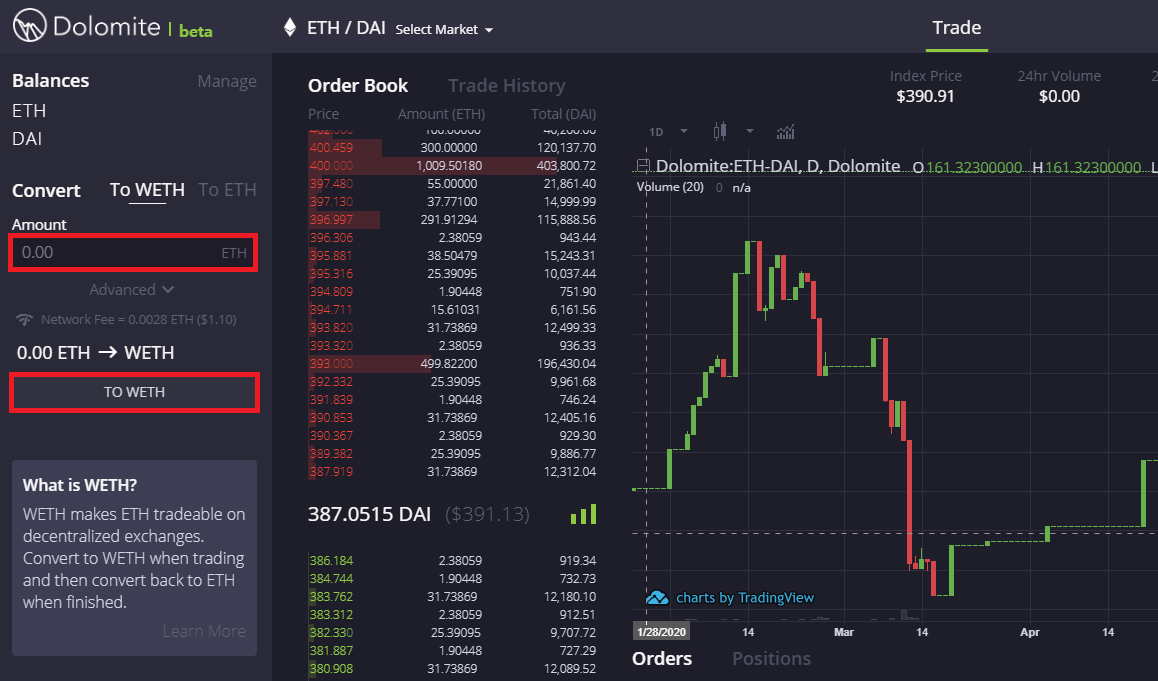 현재 ETH ↔ wETH간 전환을 지원하는 DeFi들로는 카이버네트워크, 뱀부릴레이, 레이다릴레이, 1inch 등 다양한 곳이 있으나, 여기서는 루프링 프로토콜 기반의 DEX인 Dolomite를 사용하는 방법으로 설명해보겠습니다.