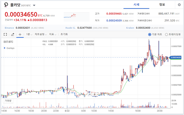 바이낸스와 업비트 등 대형거래소 동시 상장이라는 엄청난 호재에도 불구하고 이미 기대감이 가격에 상당히 반영되어 있었던 폴카닷은 비트코인의 가격 조정과 함께 단기적으로 엄청난 하락을 보였으나, 현재는 불안정한 시장 분위기 속에서도 30%가 넘는 순간 상승률을 보여주며 결국 액면분할이 좋은 선택이었음을 확인시켜주고 있는 분위기입니다.