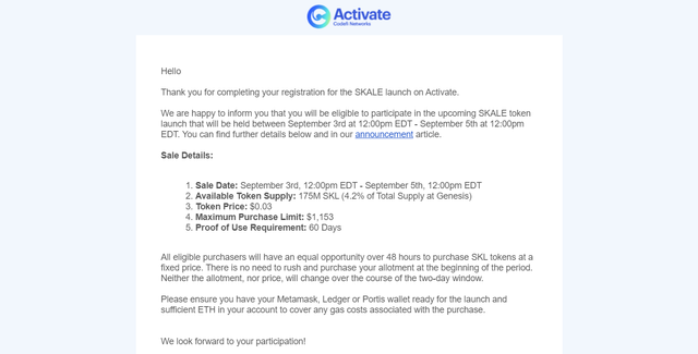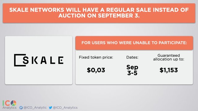 본래 8월 17일에 더치 옥션 방식으로 컨센시스의 Codefi Activate의 첫 번째 토큰 세일로 예정되어 있었다가 연기된 SKALE토큰 세일과 관련하여 새로운 업데이트 소식이 있었습니다.
