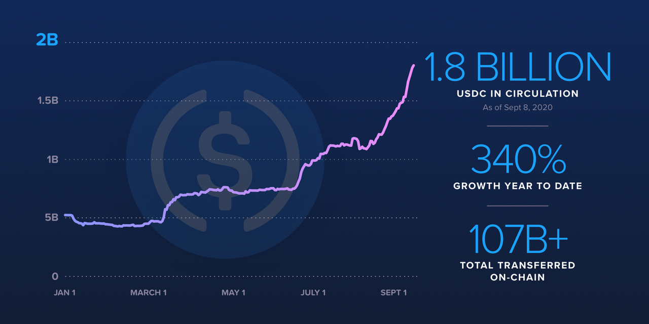 DeFi 생태계의 성장과 엄청난 인기에 힘입어 USDC의 유통량은 18억 달러를 달성하며 지난 6개월 동안 3배 이상의 급격한 성장률을 보여주고 있습니다.