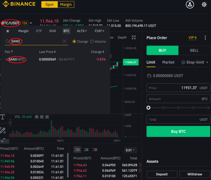 바이낸스 거래소 : https://www.binance.com/en/trade/SAND_USDT?layout=pro