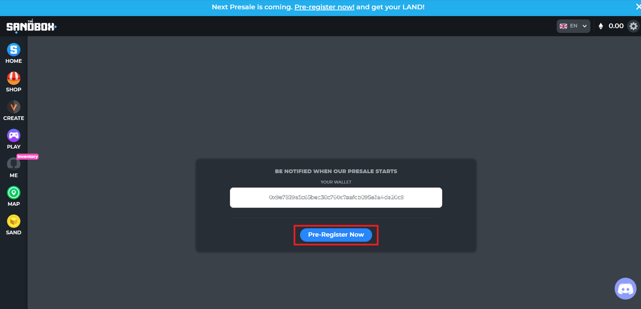 - LAND프리세일 화이트리스트 신청하기 : https://www.sandbox.game/en/whitelist/land/
