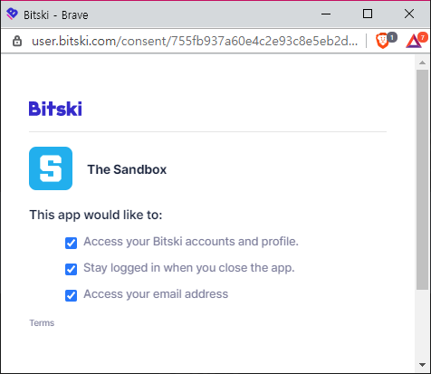 혹시라도 위와 같은 창이 나타나지 않고 화면이 멈춰있는 분들은 https://wallet.bitski.com/에 접속하여 Bitski월렛 로그인을 한 번 진행하신 뒤에 Sign in버튼을 다시 클릭하시면 됩니다