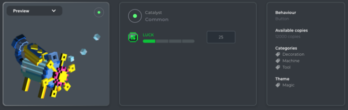 프리미엄 애셋은 한정된 기간동안 한정된 수량만 제공되는 특별한 자산(Assets)으로 특수한 능력을 지니고 있는 것이 특징입니다. 프리미엄 애셋은 오직 소유자만 게임 메이커에서 사용할 수 있으며 특별한 능력치를 통해 향후 더 샌드박스 내외에서 수익화가 가능합니다.