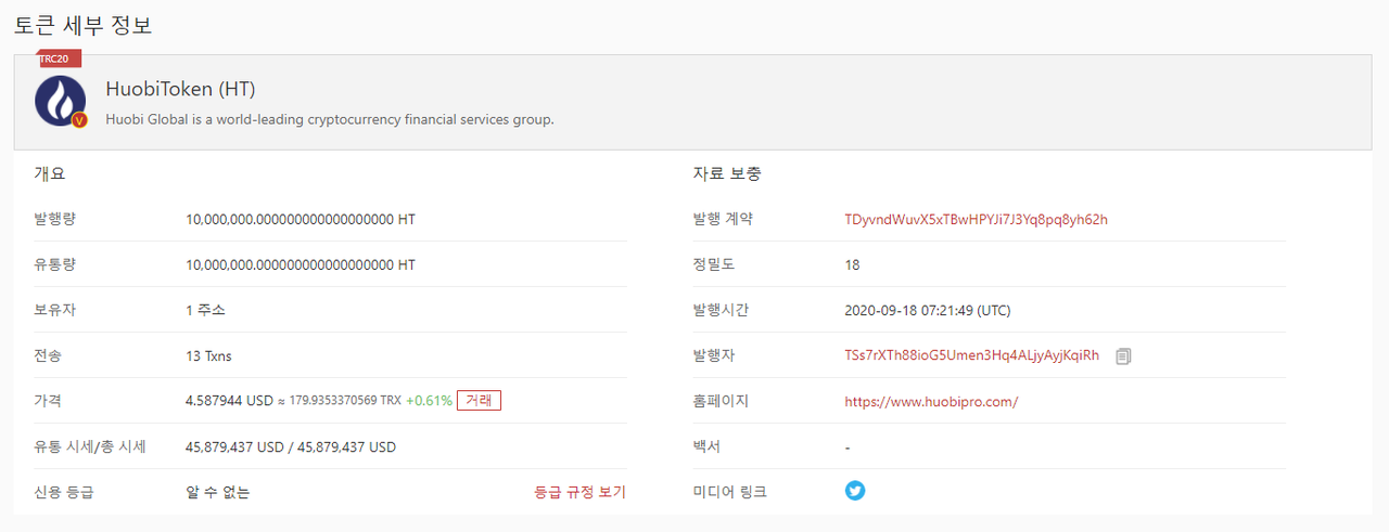 - Huobi Token Contract : https://tronscan.io/#/token20/TDyvndWuvX5xTBwHPYJi7J3Yq8pq8yh62h