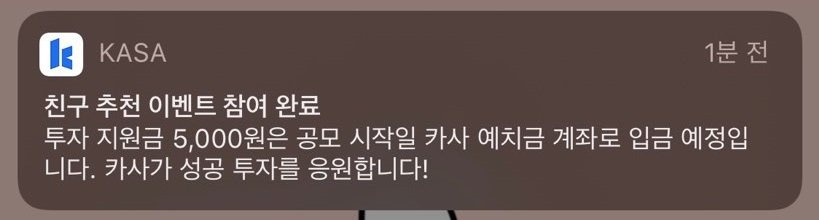 아래의 링크로 카사 앱을 다운로드 하시고 공모 시작 전에 예치금 계좌까지 연결하시면 5,000원을 받으실 수 있습니다. (저는 그냥 곧바로 가입을 했더니 못 받았네요ㅠㅠ)