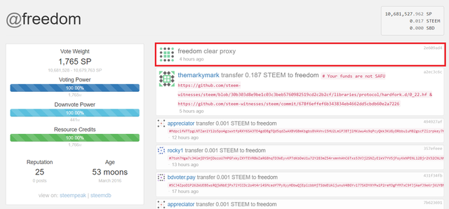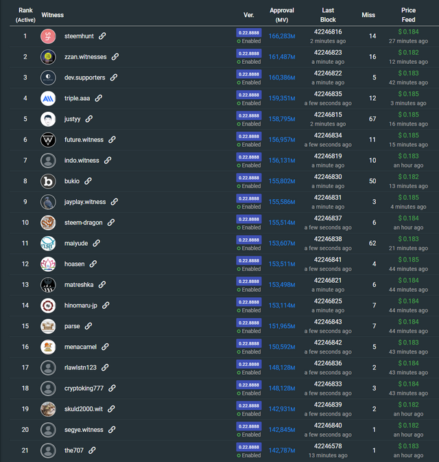 하드포크 시행 전 0.23 버전을 운영하고 있으면서 상위 20위 내의 증인 자리를 점유하고 있었던 증인 계정