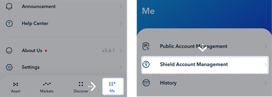 트론 기반의 테더(USDT)의 익명 전송을 체험해보고 싶은 사용자들은 기존의 트론 계정(Public Account)에 추가적으로 실드 계정을 생성해야 합니다. 현재 실드 계정은 TronLink 월렛에 접속 후 위와 같이 Shield Account Management 탭으로 접속하여 생성이 가능합니다.