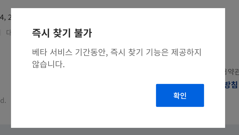 즉시 찾기 기능의 경우에는 베타 서비스 기간 동안 제공되지 않고, 찾기 대기기간 동안에도 보상이 발생하지 않는다고 합니다.. 즉.. 괜히 신청한 것 같네요...