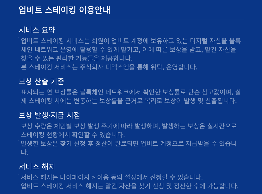 현재 업비트에서 보유 중인 토큰으로 곧바로 몸빵 테스트를 들어가봤는데, 스테이킹 서비스를 이용하시기 전에 대기기간을 잘 확인해보셔야 합니다.