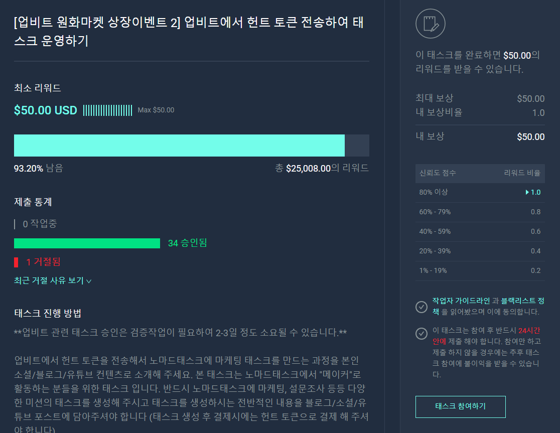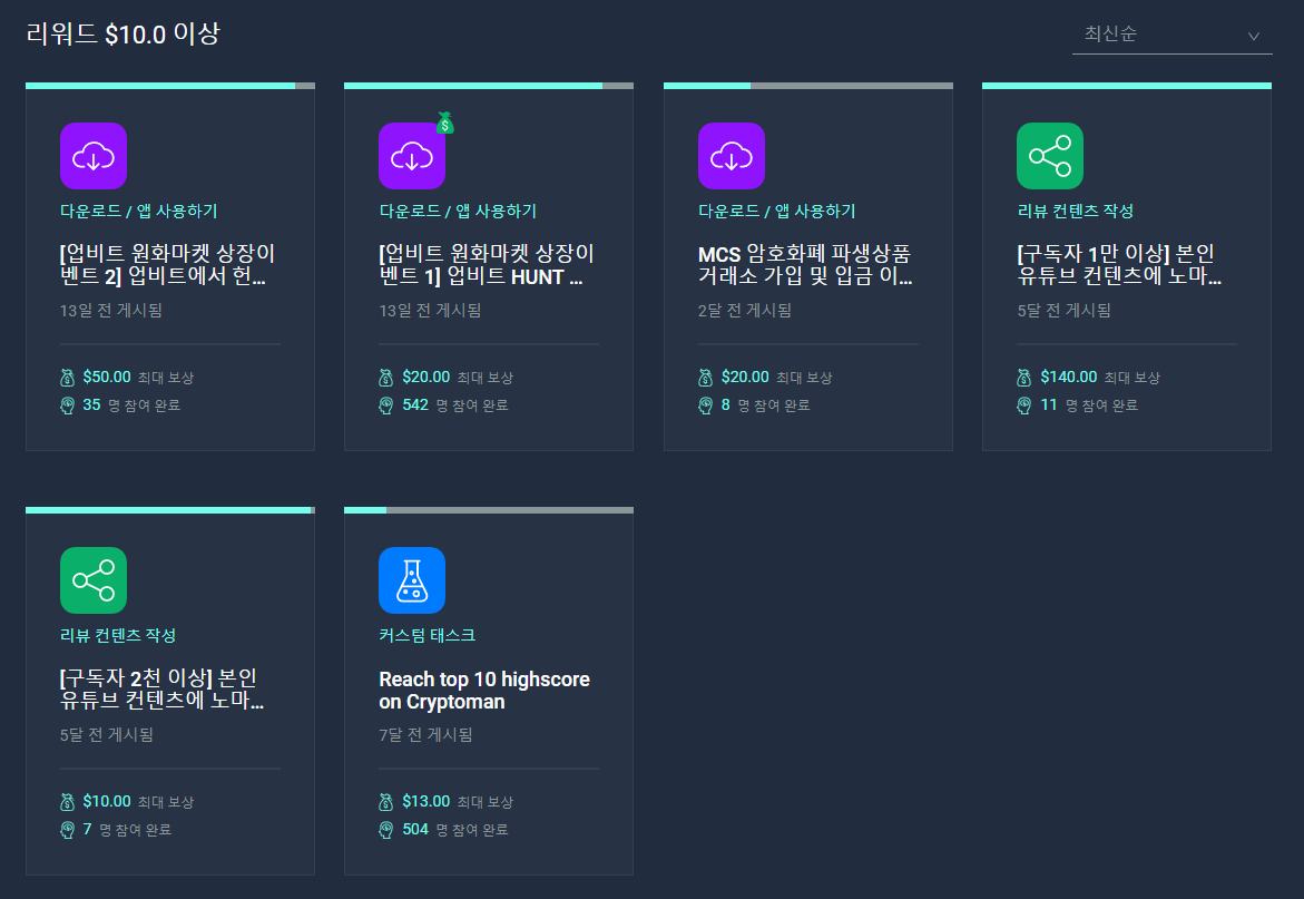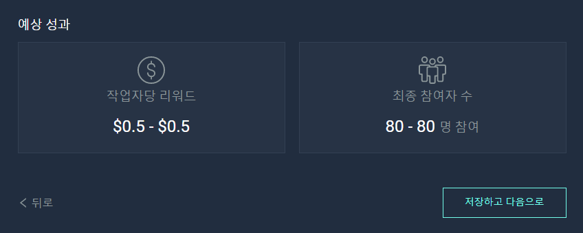 - 단, 태스크 리워드 금액이 너무 낮은 경우에는 참여자가 많지 않을 수 있습니다.