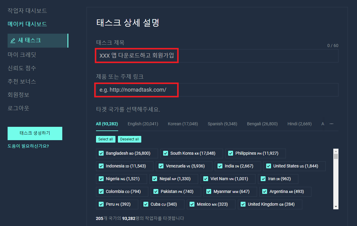 - 더불어, 외국인들도 참여가 가능한 태스크를 만들 경우에는 영어로 태스크 설명을 입력해야 하니 이점도 참고할 필요가 있습니다.