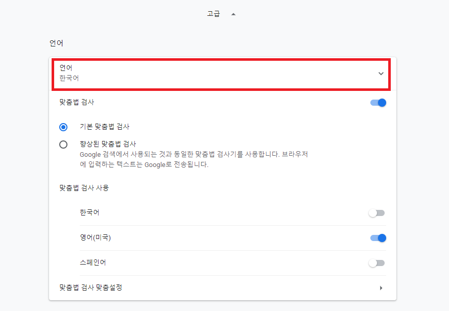 ② 언어 설정을 [영어]에서 [한국어]로 변경해주면 끝!