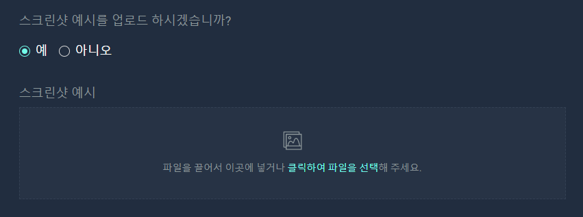 ④ 내가 만든 태스크를 제대로 잘 수행했는지를 확인하는 증거물을 스크린샷으로 수집하고자 하는 경우, 스크린샷 예시 이미지 파일을 미리 보여줄 수 있습니다. 스크린샷 대신에 텍스트 등을 수집하는 경우에는 [아니오]를 클릭하여 넘어가면 됩니다.