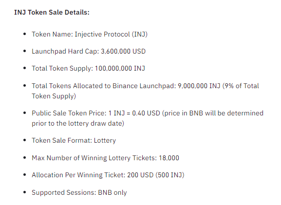 이번 바이낸스 런치패드에 할당된 INJ토큰은 전체 공급량의 9%인 9,000,000개로, INJ 토큰의 전체 공급량은 1억개로 예정이 되어 있습니다.