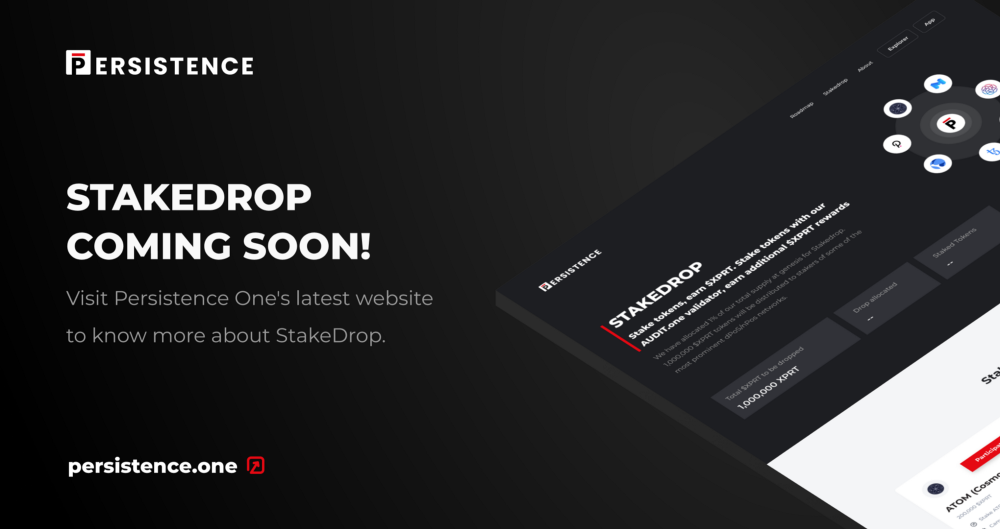 안녕하세요, 디온입니다. Persistence의 첫 번째 스테이킹 드랍 이벤트가 ATOM토큰홀더들을 대상으로 10월 26일부터 진행될 예정입니다. Persistence는 XPRT토큰 제네시스 공급량의 1%를 스테이킹 드랍 캠페인을 통해 배포할 예정이며, 코스모스 토큰 홀더들은 ATOM을 스테이킹하고 XPRT토큰을 받을 수 있습니다.