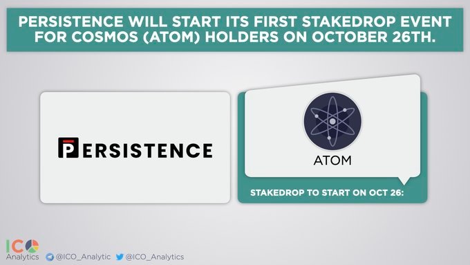 Persistence의 스테이크드랍의 최초 런칭일인 10월 26일에는 ATOM토큰 하나로 시작하지만, 추후에 폴카닷(DOT), 매틱네트워크(MATIC), 테조스(XTZ), 루나(LUNA), 카바(KAVA), 아이리스(IRIS) 등 주요 코스모스 기반 프로젝트들과 기타 PoS토큰들로 점차 확장될 예정입니다.