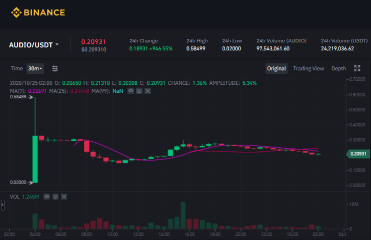 바이낸스 랩스의 투자 소식 발표와 함께 함께 우리나라 시간 기준으로 어제(10월 24일) 새벽에 Audius의 AUDIO토큰이 바이낸스에 상장한다는 공지도 발표되었습니다.