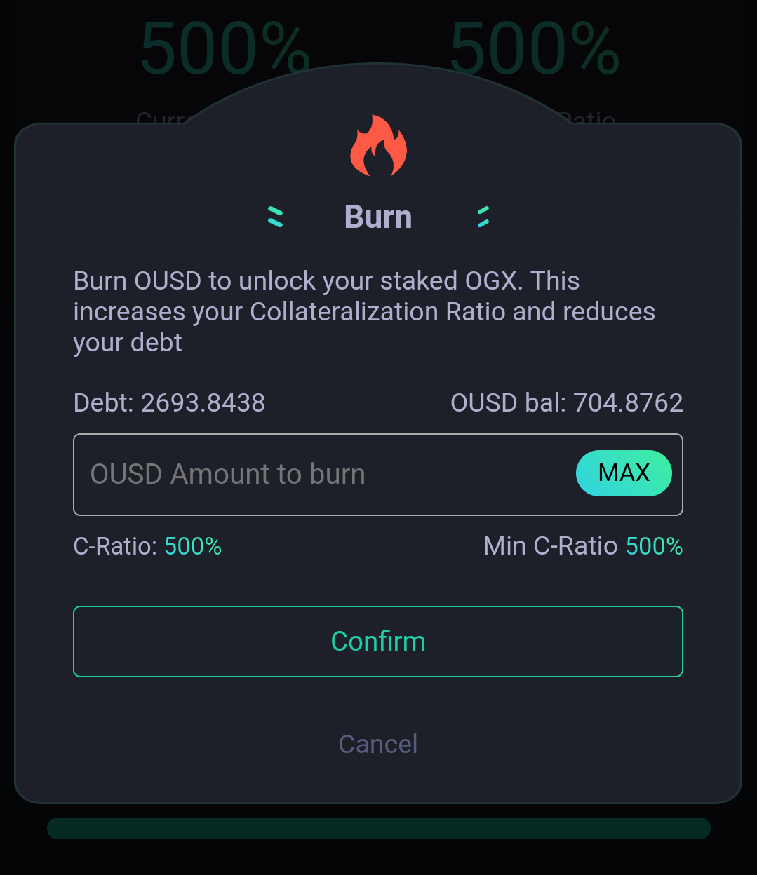 - OGX를 언스테이킹하고 내 지갑으로 다시 받고자 하는 경우에는 스테이블코인인 OUSD를 먼저 상환해야 합니다