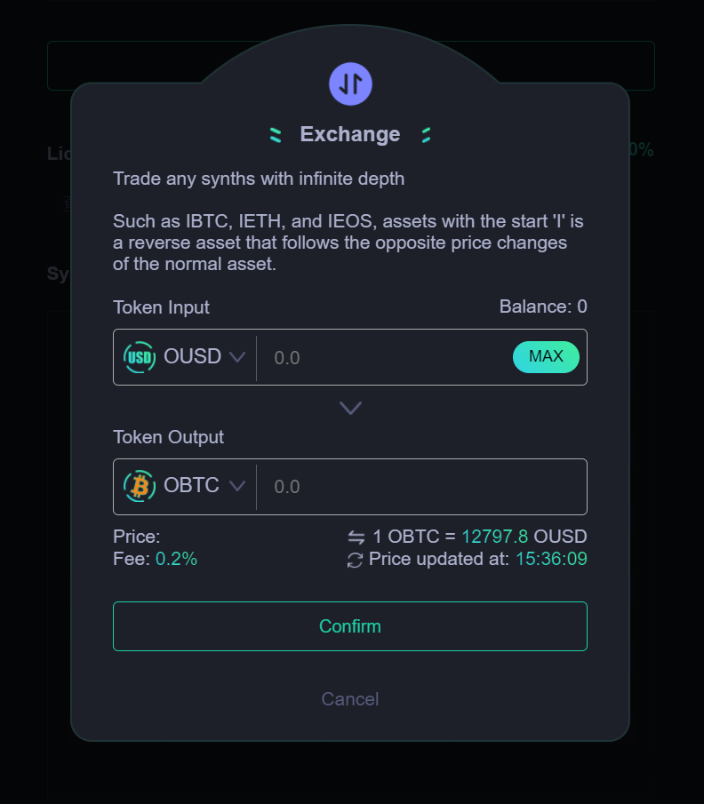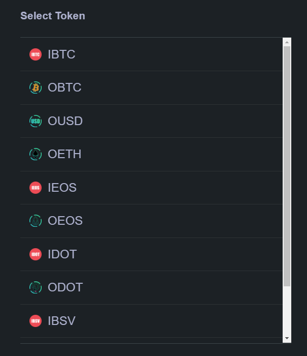 - 스테이블코인 OUSD를 가지고 특정 기초자산의 가격이 하락할 것으로 예상하는 경우 인버스(IBTC, IETH, IEOS 등)자산을 매수하면 되고, 가격이 상승할 것으로 예상하는 경우 OBTC, OETH, OEOS를 매수하면 됩니다