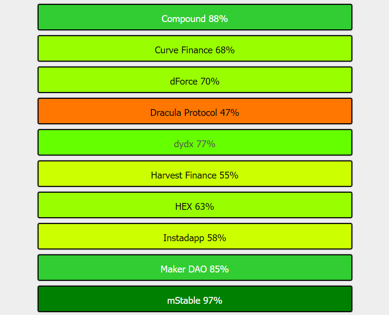 그리고 특히나 Testing이나 Audit에 있어서 리스크가 더욱 높다면 수익률이 제 아무리 높더라도 자산을 예치하지 않는 편이 안전합니다. 하베스트 파이낸스의 경우에도 확실히 TVL 규모에 비해서는 보안성의 점수가 매우 낮은 편에 속했고, 아직도 개선해야 할 점이 많아 보이네요. 제법 개발이 오랫동안 되어왔고, 인지도가 높은 프로젝트 중에서도 점수가 낮은 플랫폼들이 많다는 것도 참 아이러니 한 부분입니다.