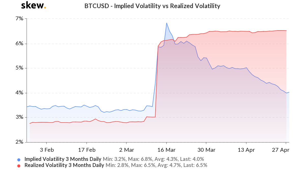 보시다시피 3월 중순에 BTC의 엄청난 가격 하락으로 인한 변동성이 급증한 적이 있었으며, 현재는 가격 변동이 점차 감소하면서 변동성이 정상화되었습니다.