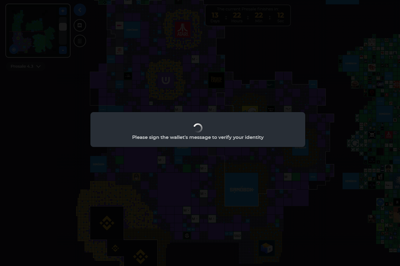 어제 진행될 예정이었던 더 샌드박스의 마지막 LAND 프리세일이 시작과 동시에 무한 로그아웃 현상이 발생하면서 정상적으로 진행되지 못하고 결국에는 연기가 되는 걸로 결론이 났습니다. 덕분에 프리세일에 참여하려고 했던 많은 사용자들이 1시간 반 이상 정도를 저 화면만 보면서 무한대기하는 상황이 벌어졌네요.