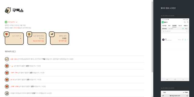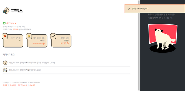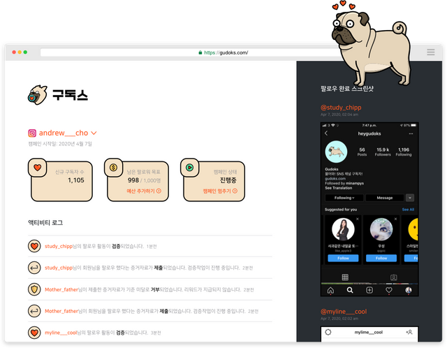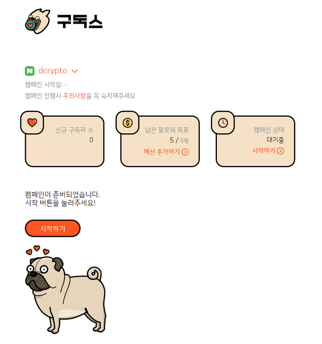 다시 리뷰로 돌아와서, 이렇게 캠페인이 시작이 되면 구독스에서 팔로워 모집을 자동으로 시작해줍니다.