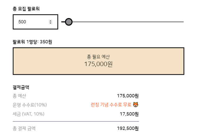 일반 블로그를 운영하는 개인이 1명의 팔로워당 350원을 지불하는 것은 굉장히 비싸게 느껴질 수 있지만, 개인사업자나 기업의 입장에서는 인스타그램이나 블로그 운영을 대행해주는 업체에 지불하는 마케팅 비용에 비해 월등히 저렴한 수준입니다.