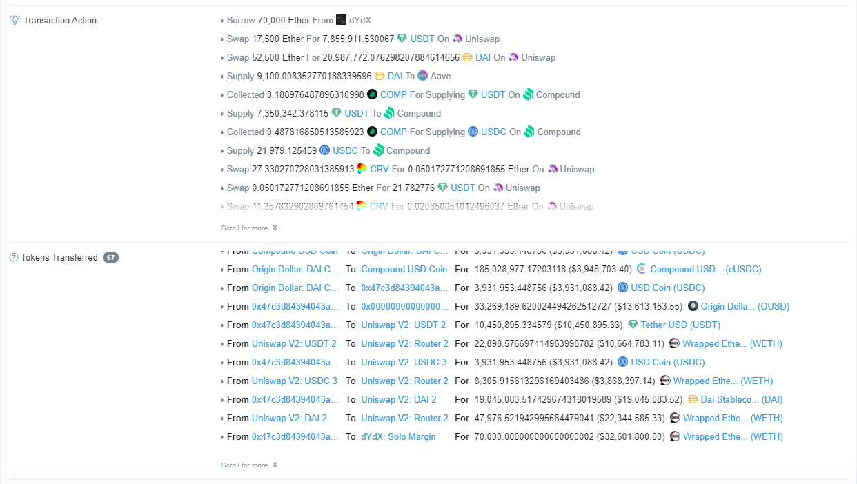 이번 OUSD의 플래시론 공격 트랜잭션은 아래의 링크에서 확인하실 수 있습니다.