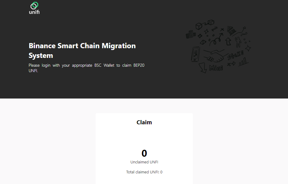 이벤트가 끝나면 https://unifiprotocol.com/migrate-bsc/ 에 접속하여 제출한 바이낸스 스마트체인 계정으로 로그인한 뒤에 UNFI토큰의 클레임이 가능합니다. Unifi가 호환되는 바이내스 스마트체인 지갑으로는 MetaMask와 MathWallet 등이 있으며, 지원되는 지갑에 대한 정보는 여기에서 확인하실 수 있습니다.