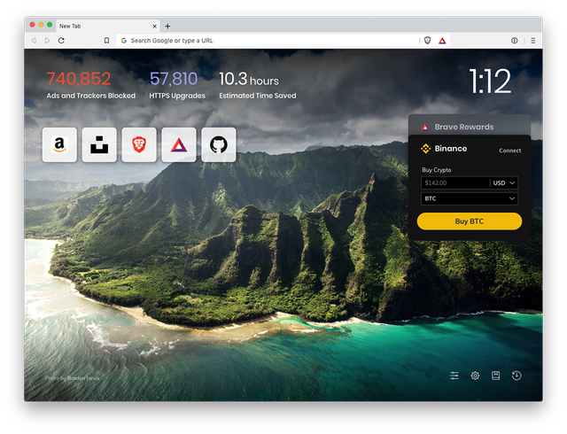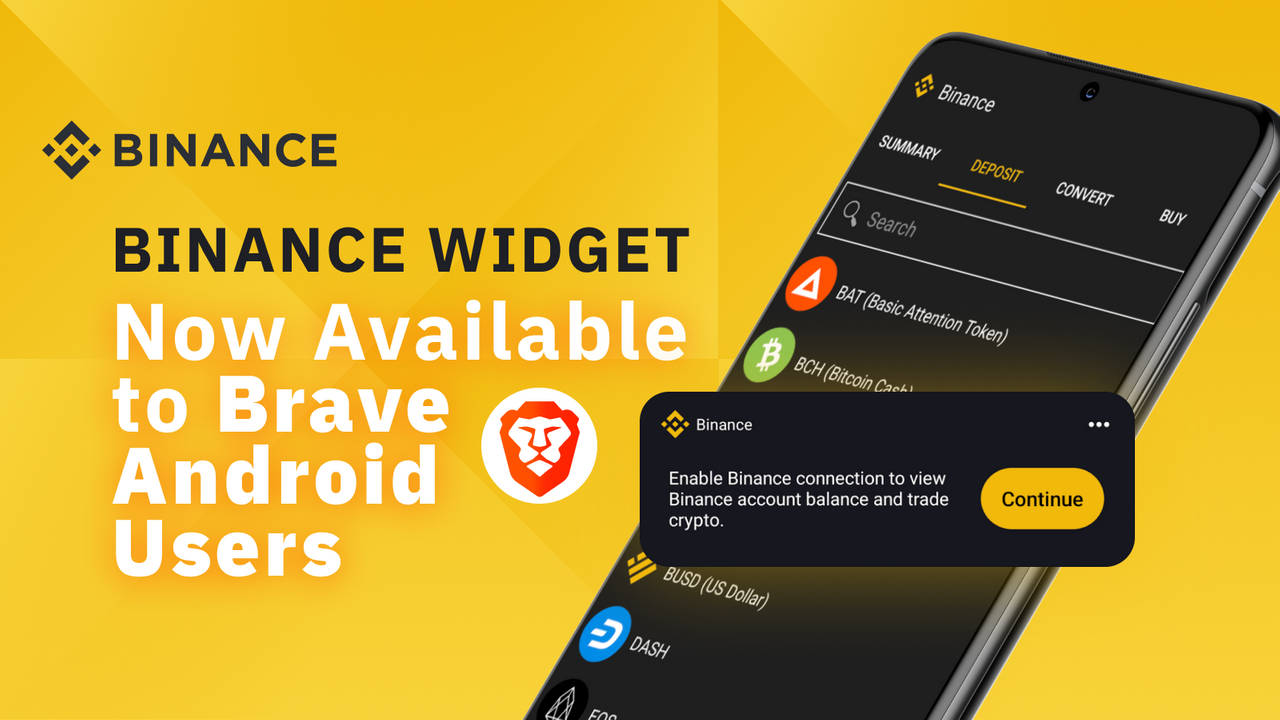 바이낸스(Binance)는 거래량 및 사용자 기준으로 세계 최대의 암호화폐 거래소이자 글로벌 블록체인 및 암호화폐 인프라 제공 업체입니다. 브레이브(Brave)는 최근 월간 활성 사용자 2천만 명과 일일 활성 사용자 7백만 명을 돌파하였으며 올해 브레이브 브라우저는 구글 플레이에서 1위를 차지하기도 했습니다. 바이낸스 위젯을 브레이브 안드로이드 브라우저에 직접 통합하면 수백만 명의 사용자들이 Binance.com 또는 Binance.US에 접속할 수 있으며 보다 쉽고 간편하게 암호화폐에 접근할 수 있습니다.