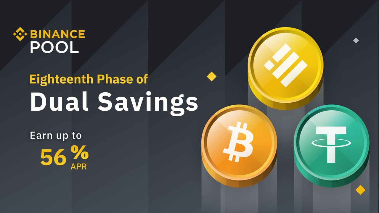 안녕하세요, 디온입니다. 최대 56%의 APY를 제공하는 18회차 바이낸스 듀얼 세이빙즈가 오픈되었습니다. 이번 회차의 듀얼 세이빙즈는 오늘 13시부터 선착순으로 모집이 시작되었으며, 지난 회차들과는 달리 지난 번 17회차와 마찬가지로 이번 18회차에서도 비트코인(BTC)의 예치 상품은 누락이 되었네요. 혹시라도 관심이 있으신 분들은 참고하시기 바랍니다.