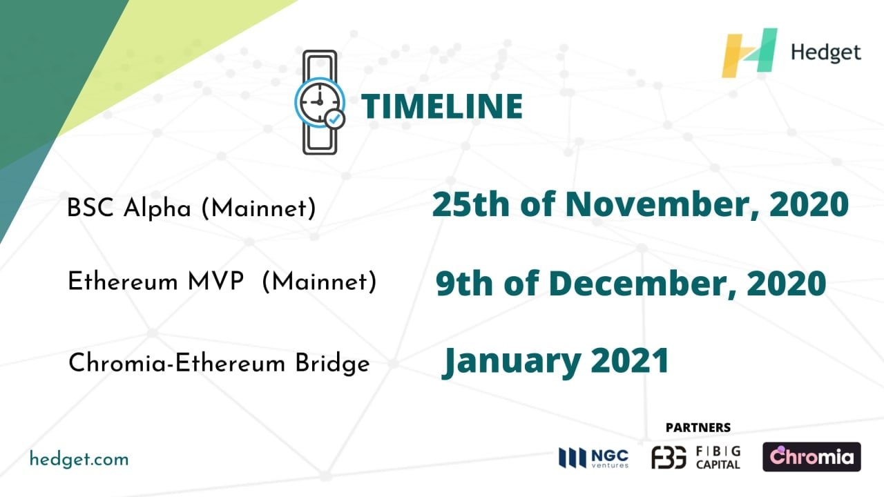 Hedget은 이더리움 블록체인을 결제 레이어로 통합하고 크로미아(Chromia) 블록체인의 백엔드 통합을 계속 개발할 예정입니다. Hedget의 바이낸스 스마트 체인의 통합은 플랫폼을 완전히 다른 체인으로 옮기려는 전환이 아니라 Hedget 개발의 확장으로 이해되어야 합니다.