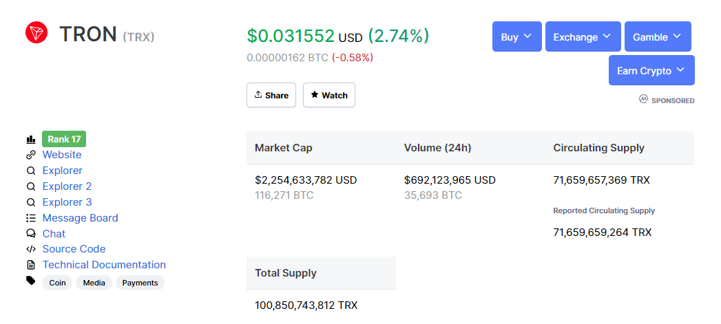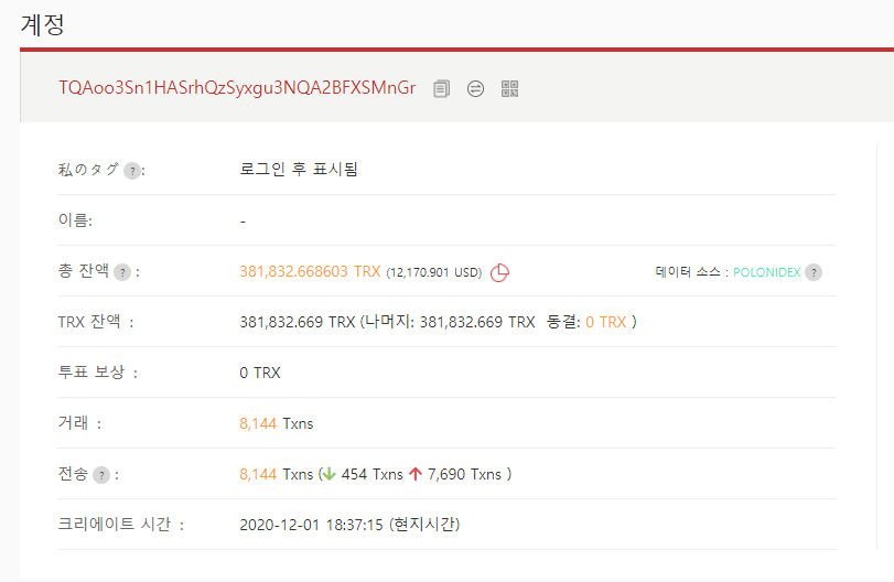 아시는 분들은 이미 눈치를 채셨겠지만, 해당 계정은 폴로닉스(Poloniex)의 거래소 계정으로 결국 TRX의 추가 보상 재원은 폴로닉스 거래소(=트론 재단)에서 지원하고 있다는 것을 확인할 수 있습니다.