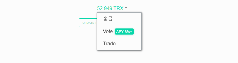 이제 스팀잇 커뮤니티 멤버들은 자연스럽게 트론 계정을 만들고 지갑을 설치해서 사용하게 되었습니다. 그리고 시장에 던지기 보다는 투표에도 참여해보고 스테이킹도 해보라는 의미에서 APY 8%+ 를 표시한 투표 메뉴도 넣어놨죠.