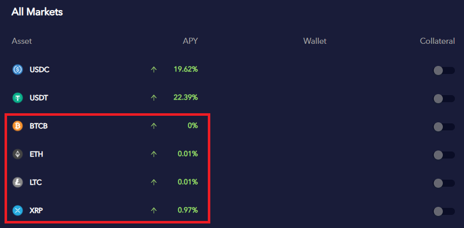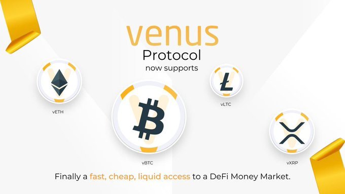 안녕하세요, 디온입니다. 바이낸스 스마트 체인 기반의 메이커다오(MakerDAO) 프로젝트라고 할 수 있는 비너스 프로토콜에 비트코인(BTCB), 이더리움(ETH), 라이트코인(LTC), 리플(XRP)이 추가되었습니다. 이제부터 보유하고 있는 비트코인, 이더리움, 라이트코인, 리플을 비너스 프로토콜에 유동성을 공급하고 비너스 프로토콜의 거버넌스 토큰인 XVS의 채굴 및 스테이블코인 VAI의 채굴이 가능합니다.