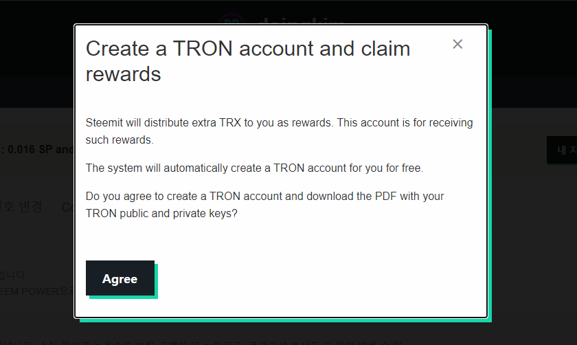 아직 스팀잇 월렛에 트론 계정을 생성하고 연결하는 작업을 하지 않으신 분들은 이 포스팅을 참고로 하시어 하나씩 천천히 진행해보시면 되겠습니다.