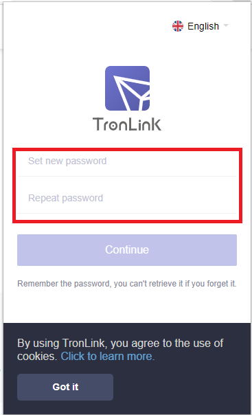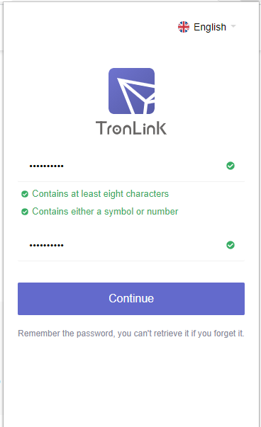 ② 트론링크 월렛 로그인 시 사용할 비밀번호를 세팅합니다.
