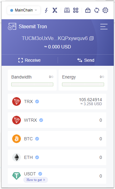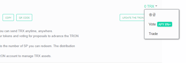 2. 트론 지갑 메뉴 설명