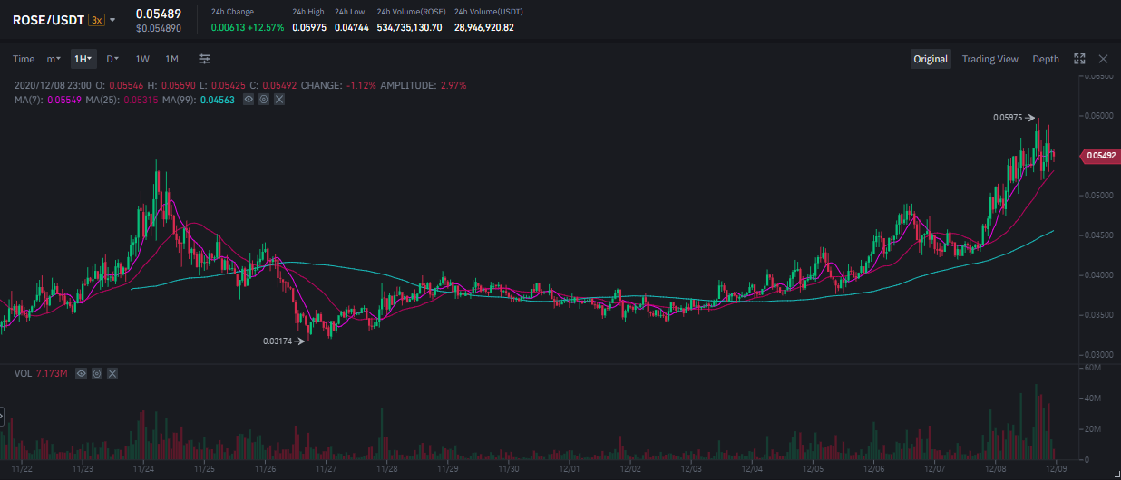 바이낸스 상장 후 0.03달러 정도까지 하락했던 ROSE토큰은 현재 약 0.055달러 수준에서 거래가 되고 있습니다. 정말 많은 유저들이 참여한 코인리스트에서의 ROSE토큰 배포 후에는 과연 가격이 어떻게 움직일지 모르겠네요.