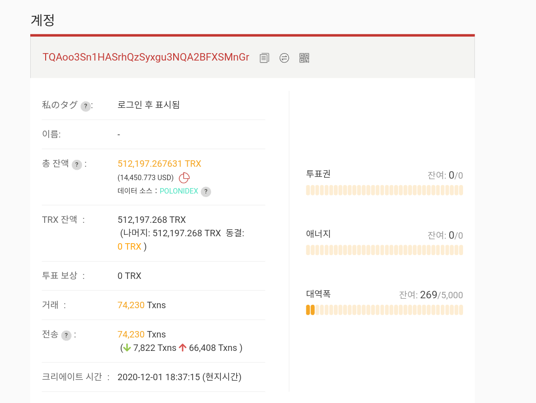 - TRX 보상 지급 계정 : TQAoo3Sn1HASrhQzSyxgu3NQA2BFXSMnGr