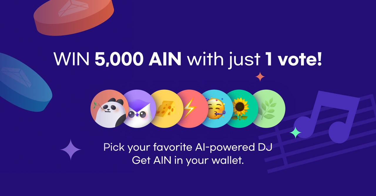 그리고 300 AIN 이상을 스테이킹하고 음원 청취 및 투표에 참여하는 사용자 중에서는 총 10명을 선정하여 5,000 AIN을 지급하는 이벤트를 진행하고 있으니, 생각이 있으신 분들은 참여해보시는 것도 괜찮을 것 같습니다. (추후 별도의 포스팅으로 소개할 예정인데, 스테이킹한 AIN토큰은 26.82%의 APY로 이자수익도 얻을 수 있습니다)