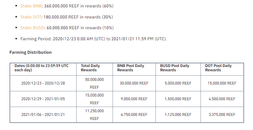 - 바이낸스 공지 : Introducing Reef Finance (REEF) on Binance Launchpool! Farm REEF By Staking BNB, BUSD & DOT Tokens
