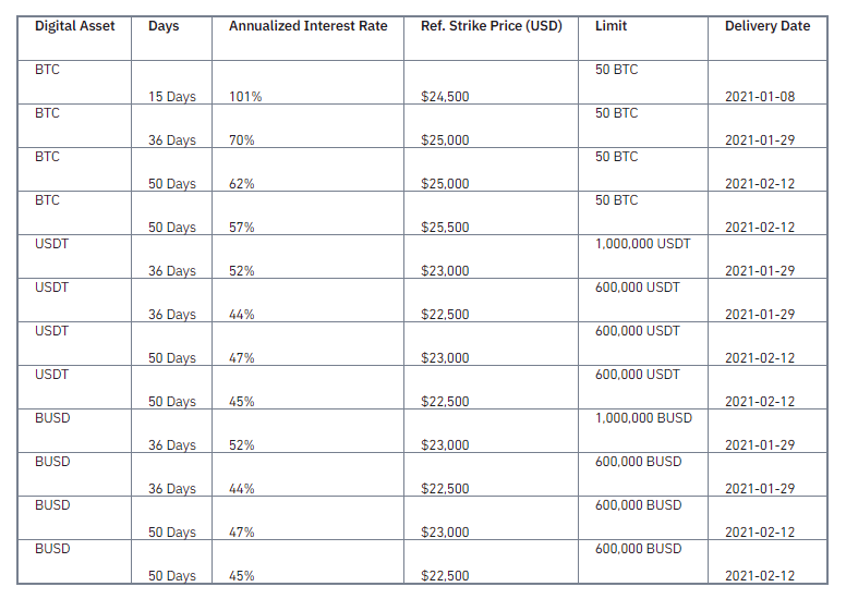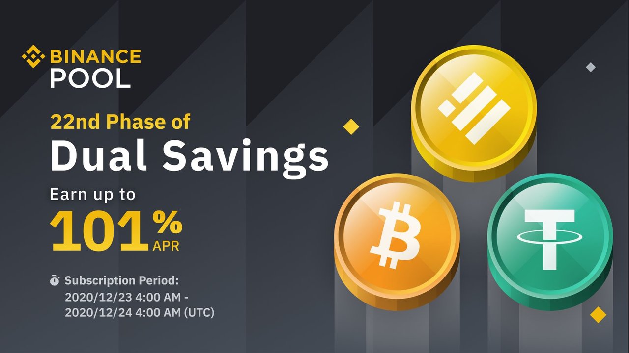 안녕하세요, 디온입니다. 드디어 바이낸스 듀얼 세이빙즈에서 최대 100%를 초과하는 APY를 제공하는 상품이 등장하였습니다. 이번으로 22회차를 맞이하는 바이낸스 듀얼 세이빙즈는 오늘 오후 1시부터 선착순으로 모집이 시작되었으며, 1월 8일 만기인 행사가 24,500달러의 BTC의 경우에는 APY가 무려 101%입니다. 혹시라도 관심이 있으신 분들은 참고하시기 바랍니다.