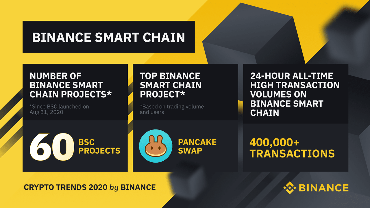 현재 바이낸스 스마트 체인을 기반으로 운영되는 60개 이상의 프로젝트가 있으며 팬케이크스왑은 가장 인기 있는 AMM(Automated Market Maker) 및 수익률 농장입니다. 새로운 블록체인 플랫폼에서의 개발을 장려하기 위해 바이낸스는 새로운 DeFi 프로젝트를 지원하는 1억 달러의 엑셀러레이터 펀드 프로그램을 발표하기도 했습니다.